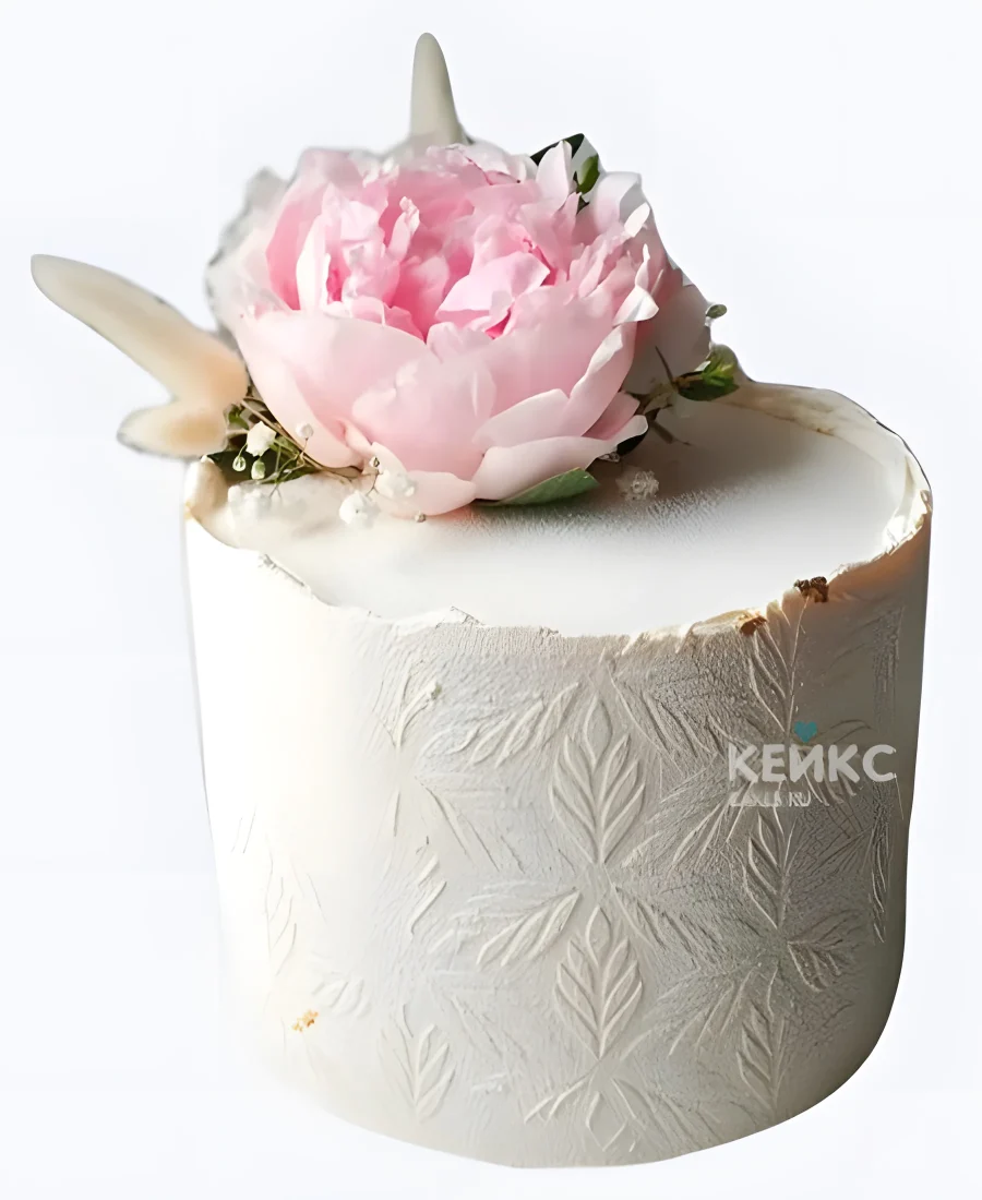 Свадебный торт с розовым пионом и узорами