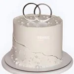 Элегантный круглый торт в нежных бело-кремовых тонах станет прекрасным украшением свадебного стола. Его гладкая поверхность украшена тонкими серебряными кольцами и россыпью жемчужин, создавая атмосферу роскоши и изысканности. Декоративные элементы перекликаются с символикой брака, добавляя торжественности моменту. Мягкие линии и сдержанная цветовая гамма делают этот торт воплощением утонченного вкуса и гармонии.
