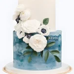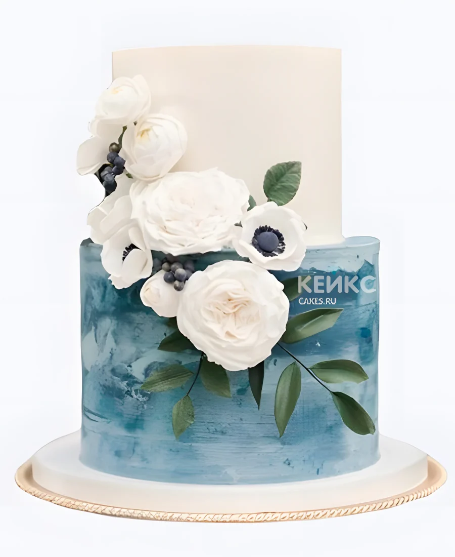 Свадебный торт с синими мазками цветы на ветке