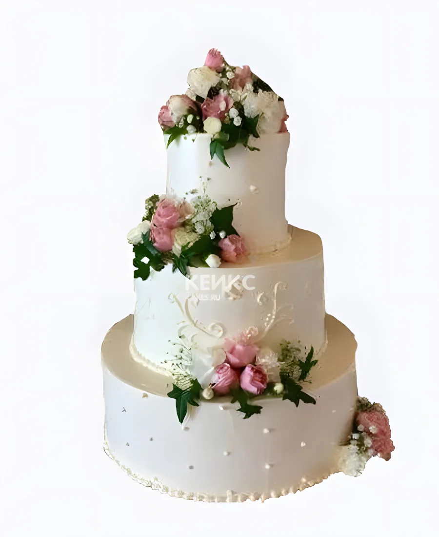 Необычный торт с белыми жемчужинами и цветами