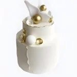 Необычный торт с бело-золотыми шарами