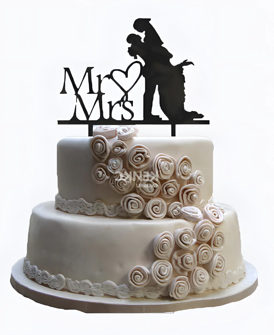 Нежный свадебный торт с топпером жениха и невесты