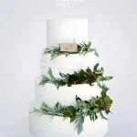 Четырехъярусный свадебный торт с живыми цветами белый
