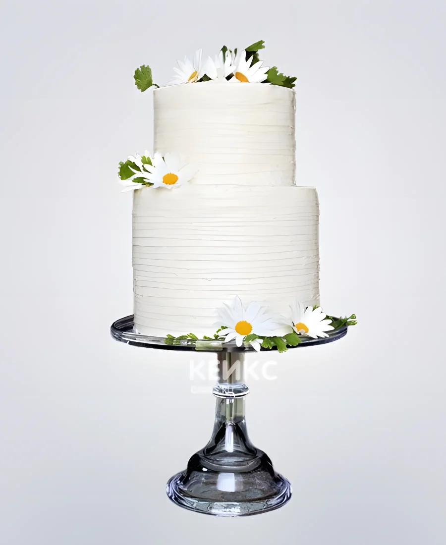 Свадебный торт с живыми цветами ромашки