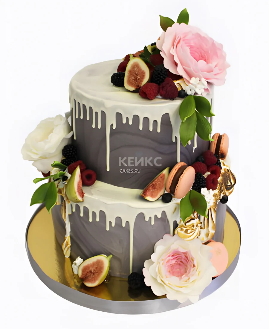 Свадебный торт с живыми цветами и инжиром