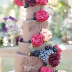 Шоколадный свадебный торт с яркими цветами