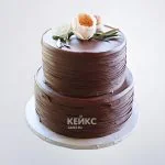 Двухъярусный свадебный шоколадный торт с живыми цветами