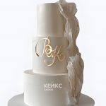 Свадебный торт трехъярусный с инициалами и воздушной фигуркой