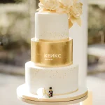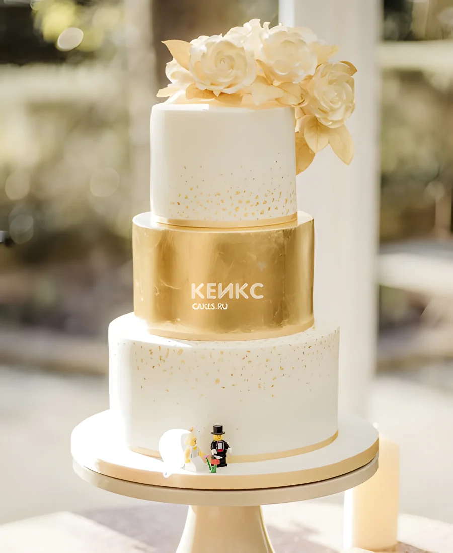 Красивый торт с золотым ярусом и цветами