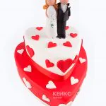 Свадебный торт в форме сердца Жених и невеста красно-белый
