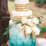Свадебный торт трехъярусный с бирюзовым нижним ярусом
