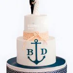 Свадебный торт в морском стиле с фигуркой жениха и невесты