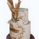 Свадебный торт в стиле Бохо с сухоцветами и золотой окантовкой