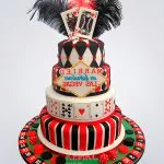 Свадебный Торт четырехъярусный казино, рулетка, карты, кости, перья