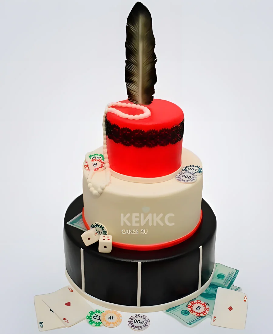 Свадебный Торт с деньгами, фишками, жемчугом и пером