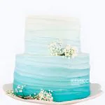 Свадебный торт в стиле Омбре нежно-голубой с цветочками