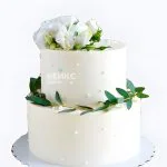Свадебный торт в стиле Рустик с белыми цветами и веточкой