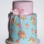 Свадебный торт Шебби Шик с голубым основанием и цветочным принтом