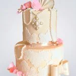 Свадебный Торт в стиле Шебби Шик с бантом и белым кружевом