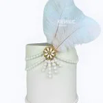 Свадебный торт в стиле Великий Гэтсби с перьями и ожерельем белый