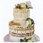 Свадебный торт с крупными каплями золота и белыми цветами