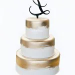 Свадебный торт трехъярусный, украшен золотом с буквой