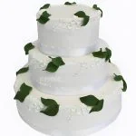 Свадебный торт трехъярусный белоснежный с зелеными листьями
