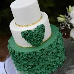Свадебный торт зеленые рюши, зеленое сердце, золотая окантовка