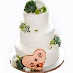 Свадебный торт трехъярусный с суккулентами и зелеными хризантемами