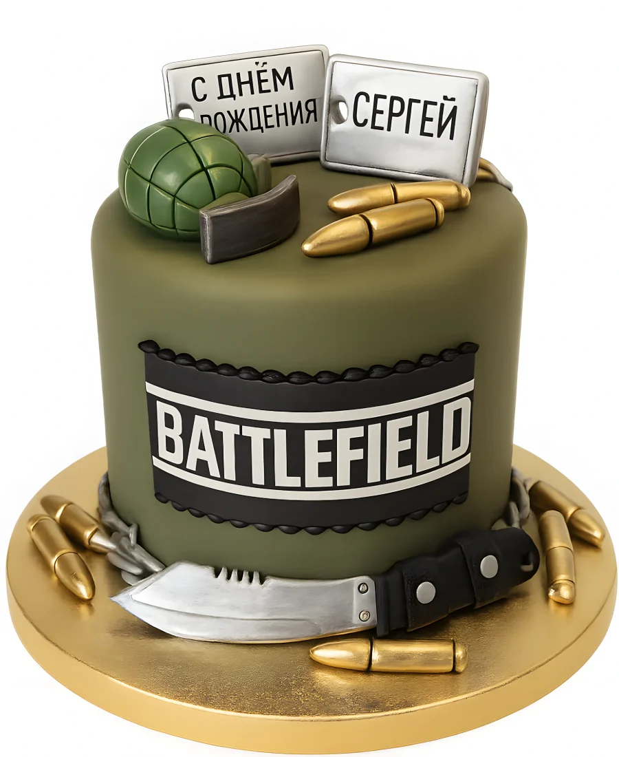 Темно-зеленый торт по тематике Battlefield
