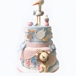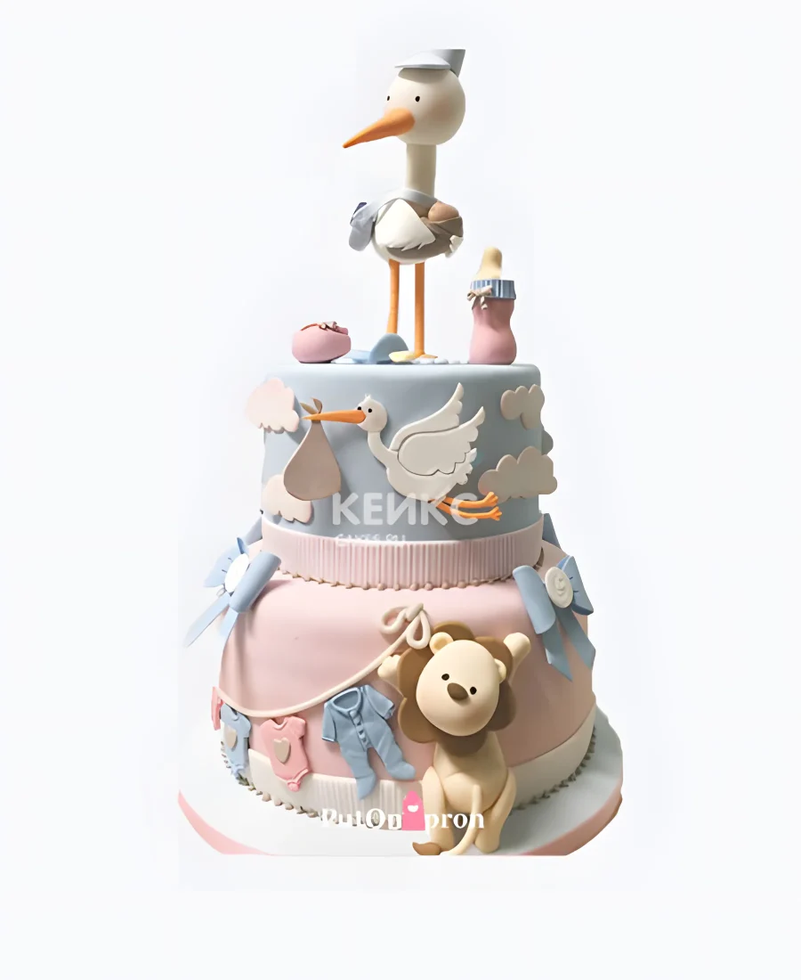 Красивый розово-голубой торт с аистом