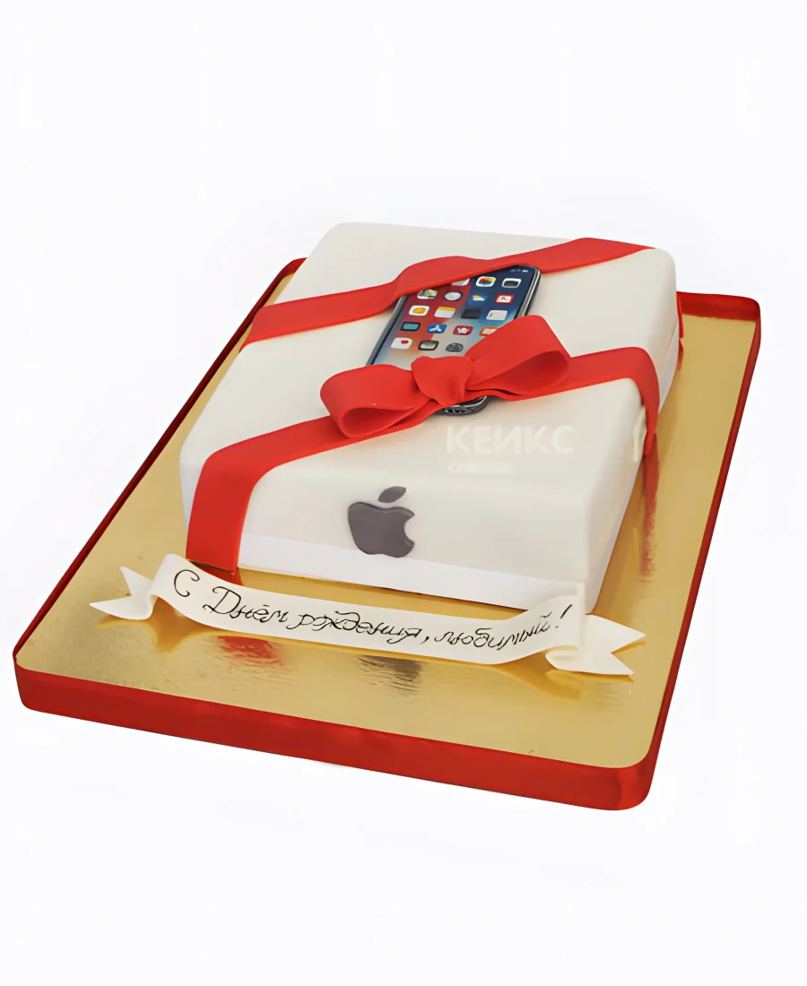 Прямоугольный торт айфон 7 с красным бантом