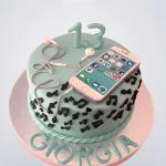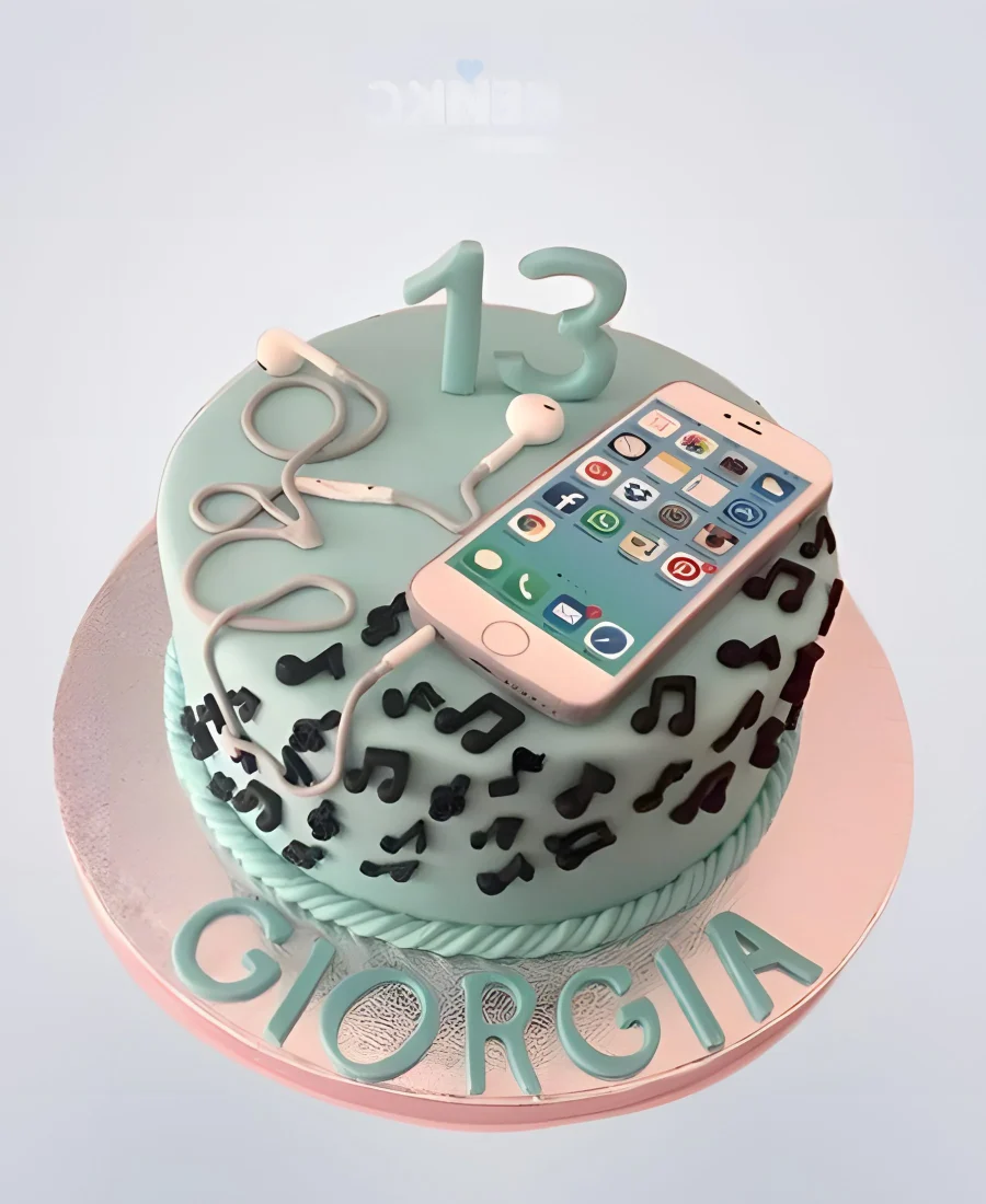 Торт с розовым айфоном и наушниками