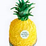 Нежный кремовый торт с яркой тропической тематикой. На белоснежной поверхности эффектно выделяется аппликация в виде сочного ананаса с зеленым хохолком. Лаконичная круглая форма подчеркивает элегантность декора. Сочные желто-зеленые акценты создают летнее настроение и визуальную свежесть.
