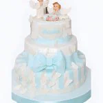 Нежный трехъярусный торт, словно сотканный из облаков. Каждый ярус обрамлен изящной голубой окантовкой, создающей эффект воздушности. Белоснежная мастика придает торту чистоту и легкость, а мягкие складки напоминают струящиеся ткани. Лаконичный и элегантный, он словно парит в воздухе, наполняя пространство ощущением праздника. Голубые акценты добавляют свежести, делая торт похожим на зимнюю сказку или морозный узор на стекле.