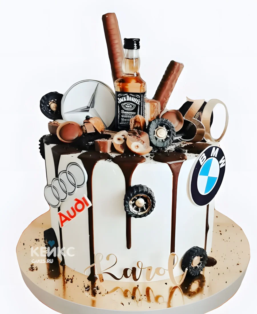 Торт Ауди на 30 лет с шоколадом и бутылкой виски