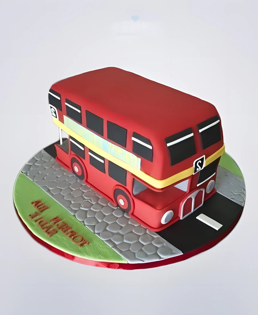 Торт в виде красного двухэтажного автобуса