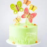 Этот изысканный одноярусный торт украшен нежными разноцветными бабочками, которые создают эффект лёгкости и воздушности. Гладкая поверхность торта служит идеальным фоном для ярких съедобных украшений. Бабочки разных размеров и оттенков расположены асимметрично, что придаёт композиции динамичность. Торт выглядит очень празднично и подойдёт для любого торжества.