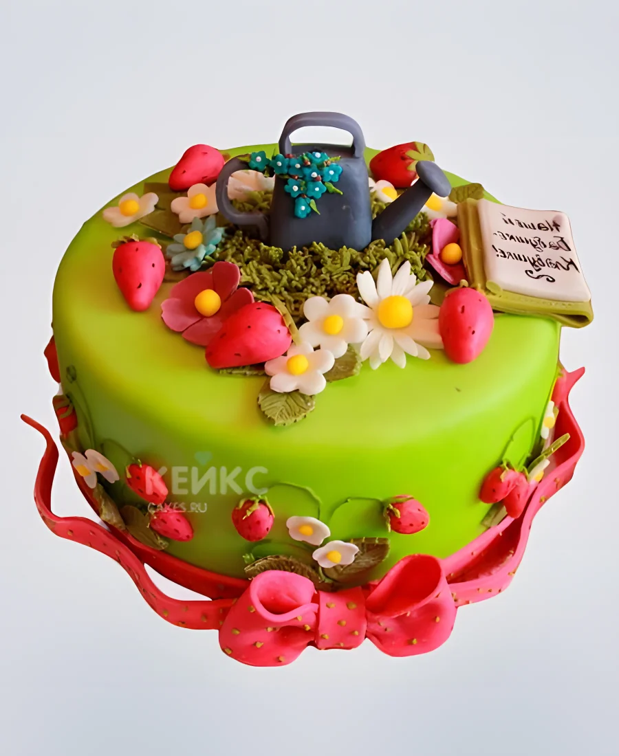 Торт зеленый с розовым бантом