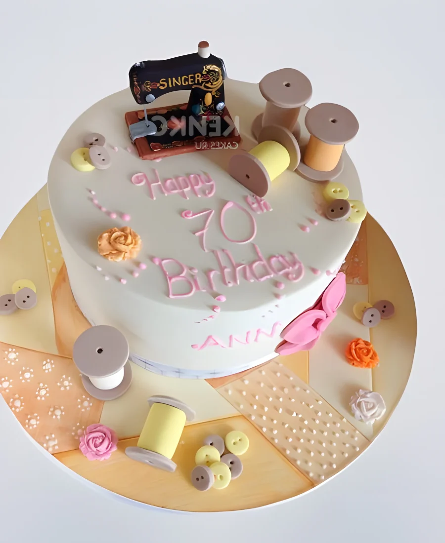 Торт белый со швейной машинкой и нитками