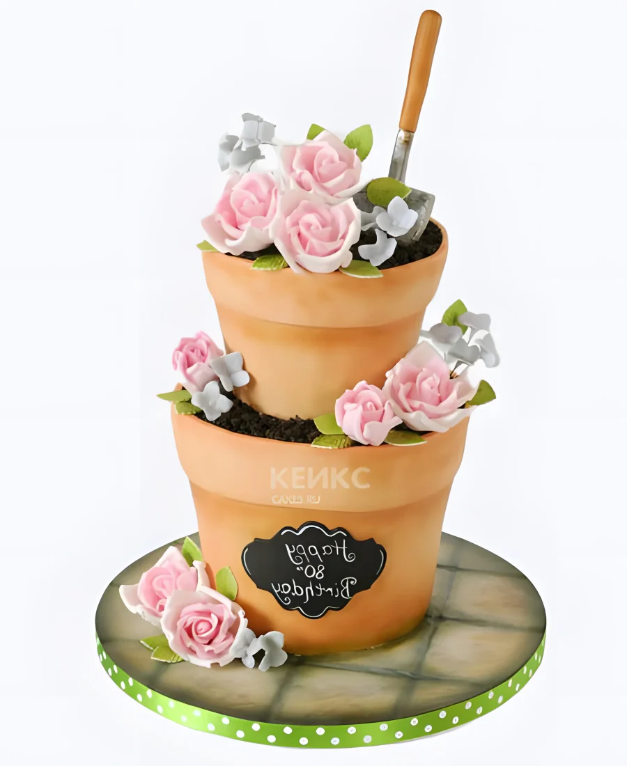 Торт в виде вазонов с цветами