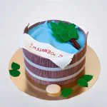 Торт баня в виде деревянной шайки и веника