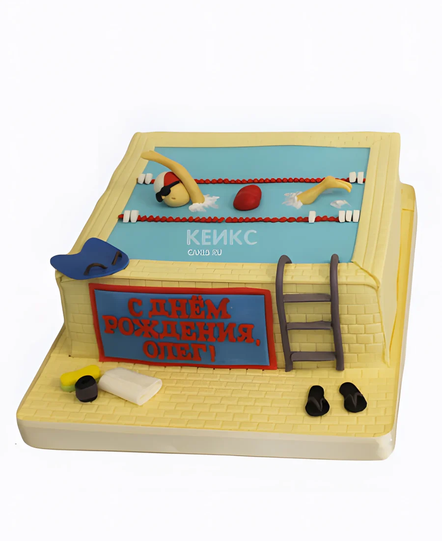 Торт бассейн с поздравительной надписью
