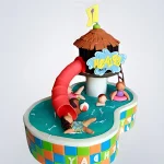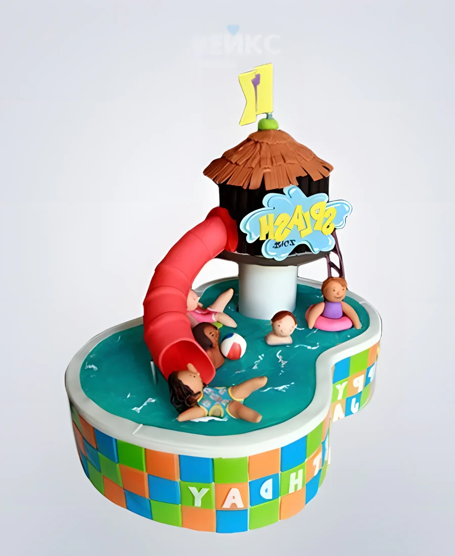 Забавный торт бассейн с красной горкой