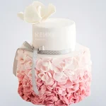 Торт бело-розовый с цветами из крема и ленточкой
