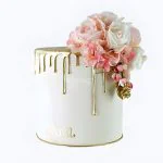 Белый торт с золотыми подтёками и цветами