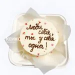 Очаровательный торт с декором в виде сердца. Он украшен красивым рисунком в бело-кремовом цвете.