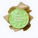 Этот красочный и яркий бенто-торт станет отличным дополнением к вашему торжеству! Он оформлен в светло-зеленых тонах, имеет стильную черную надпись и украшен ромашками.