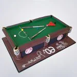 Торт бильярд в виде стола с киями и шарами
