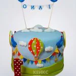 Голубой торт с воздушным шаром и гирляндой